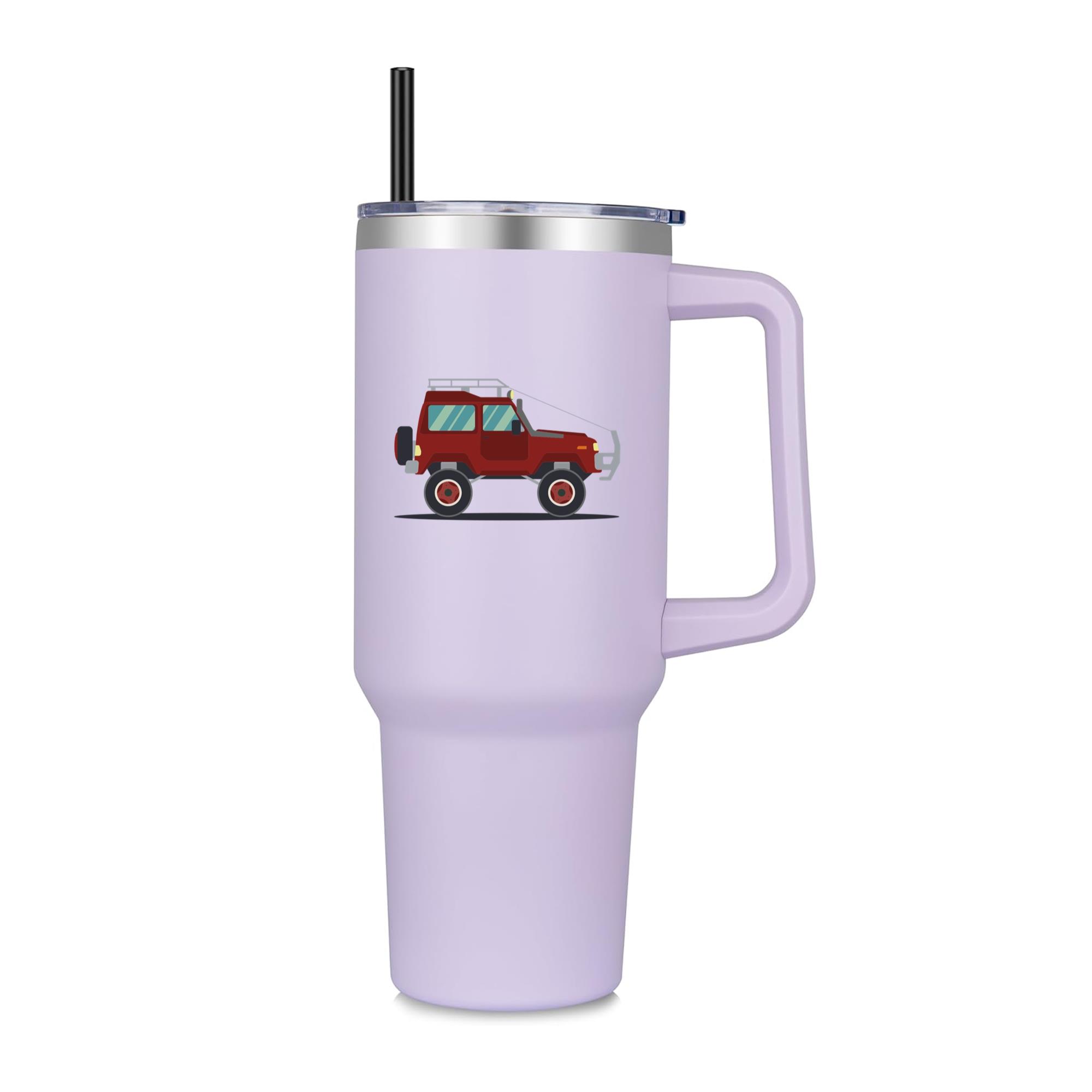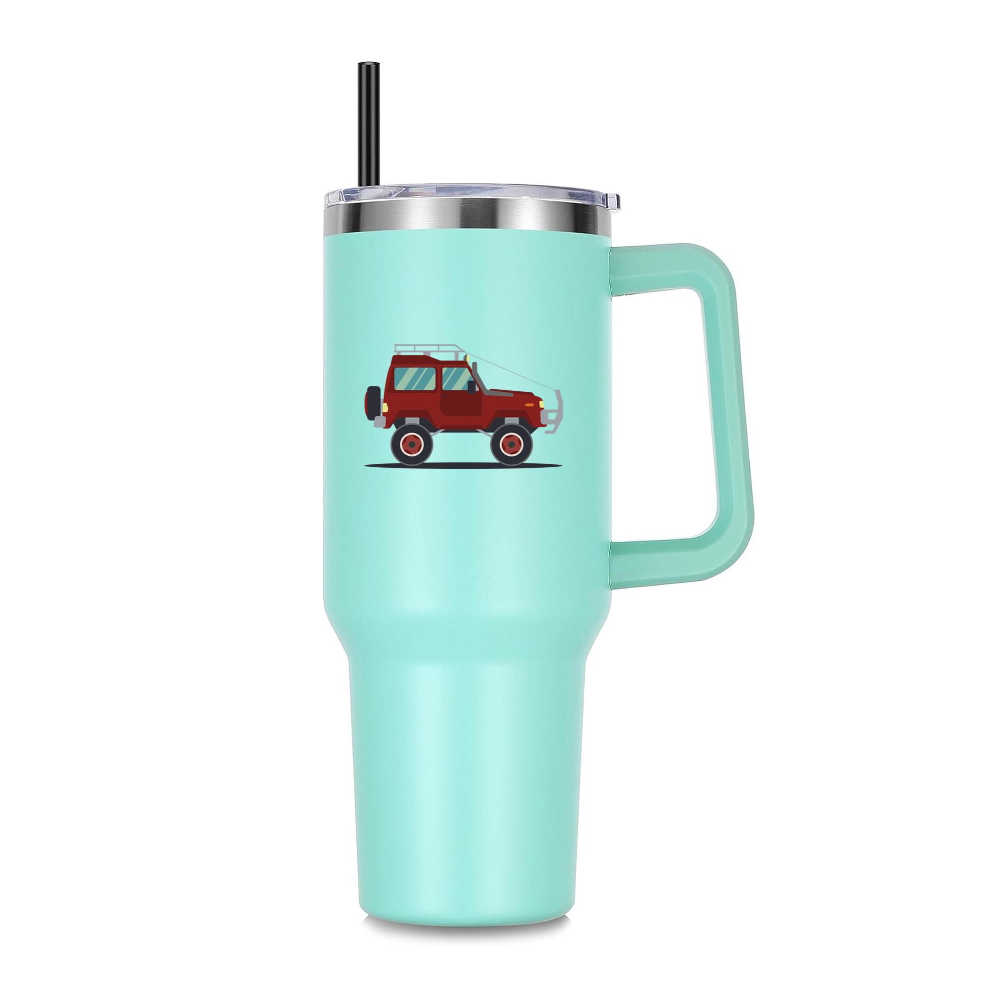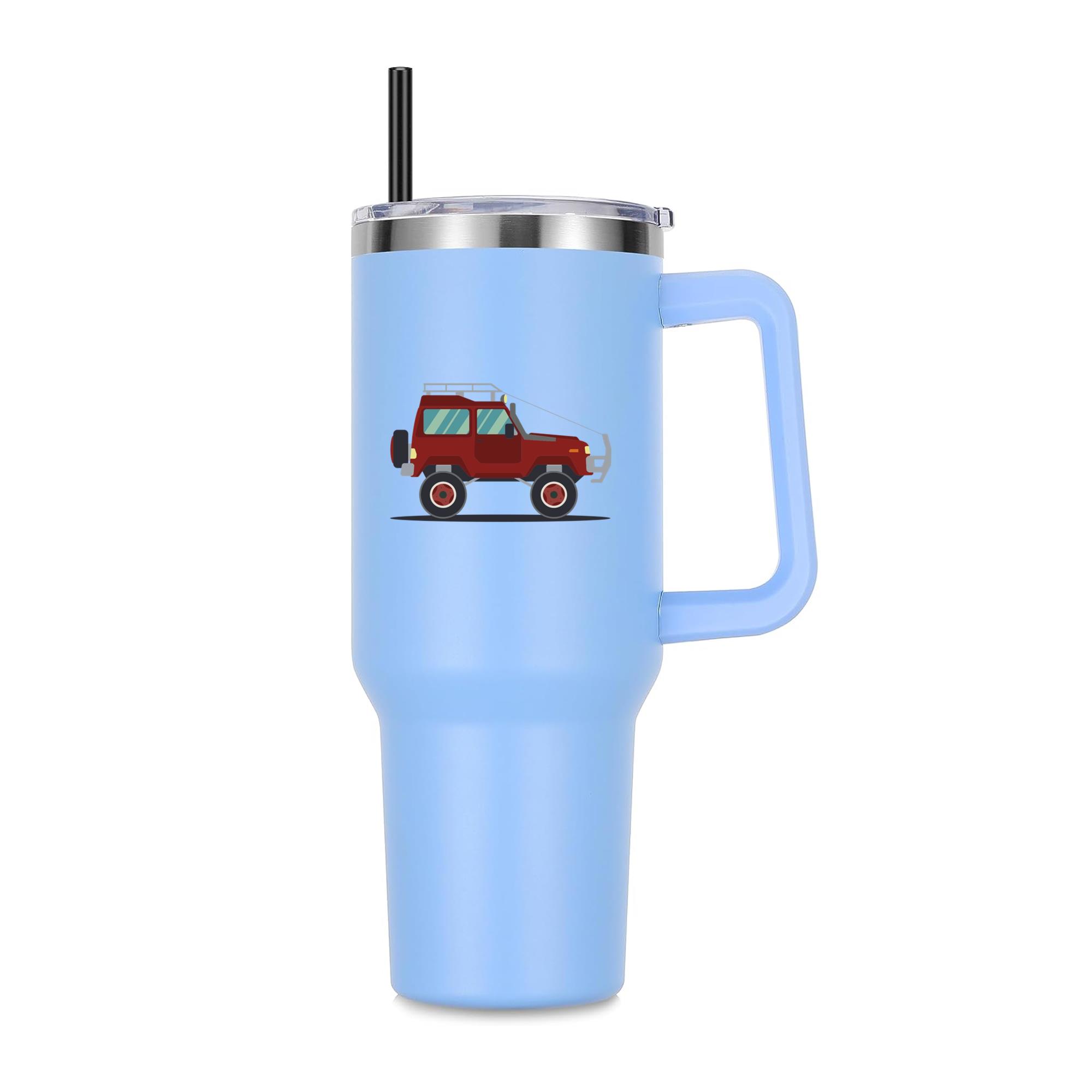 Jeep Car Vehicle Body Wheel Flat 40oz Stainless Steel Tumbler 40oz Stainless Steel Tumbler with Handle and Straw – Double-Wall Vacuum Insulated Travel Mug with Lid