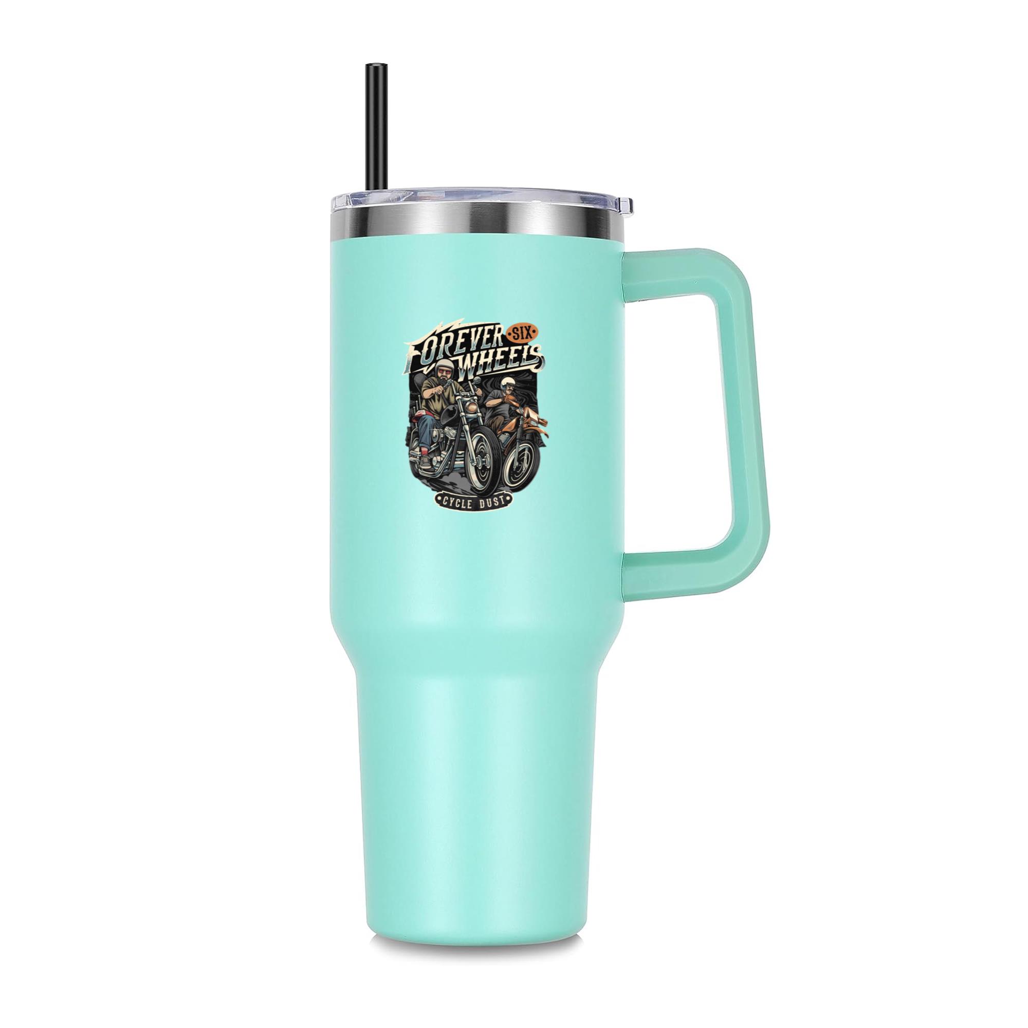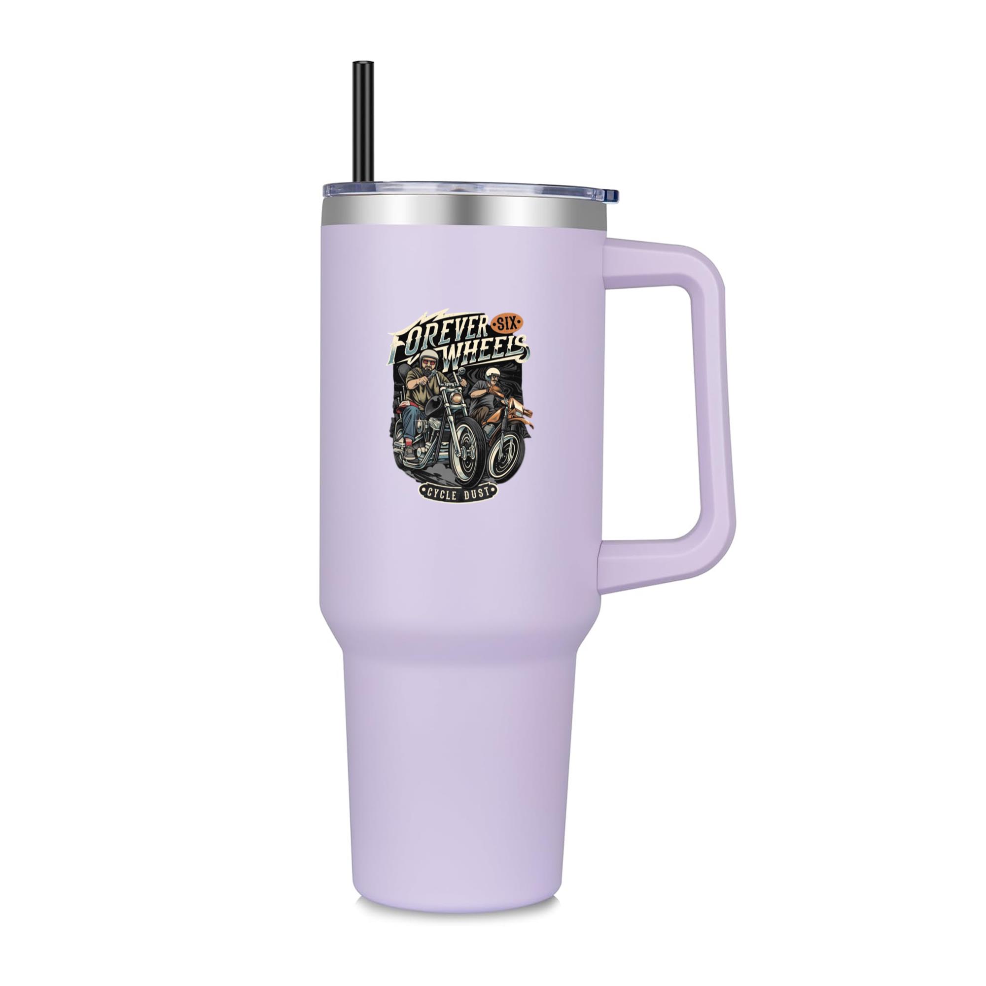 Outrider Motorbike Confident Classic 40oz Stainless Steel Tumbler 40oz Stainless Steel Tumbler with Handle and Straw – Double-Wall Vacuum Insulated Travel Mug with Lid