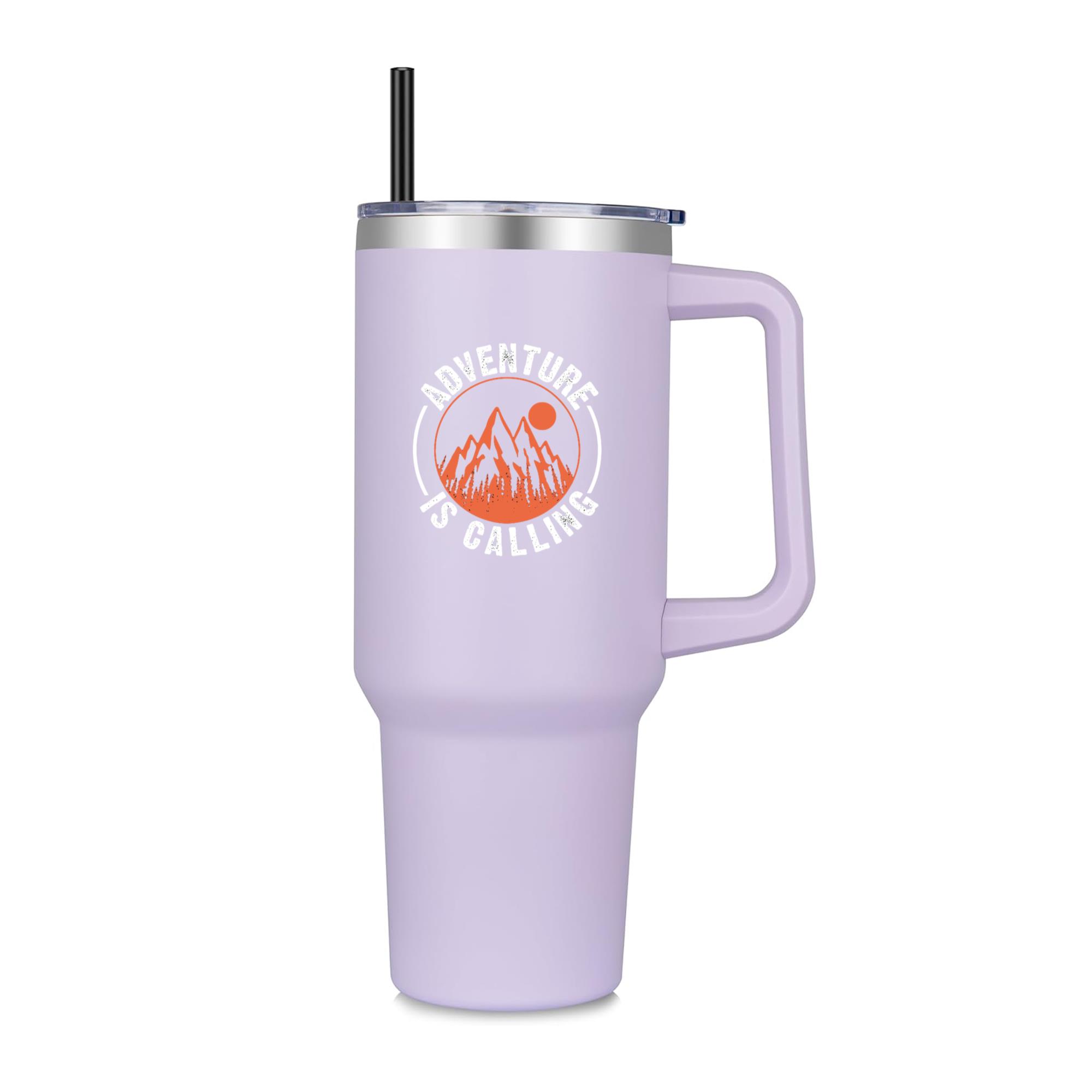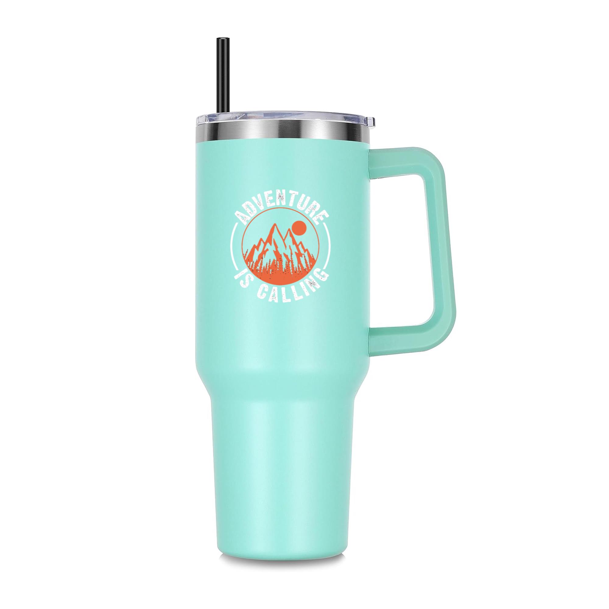 Designed with a sturdy ergonomic handle for easy carrying and a spill-resistant lid with reusable straw, this tumbler is ideal for water, coffee, smoothies, or any beverage on the go. The sleek, powder-coated finish resists scratches and condensation, while the tapered base fits most car cup holders — making it a perfect blend of function and design.