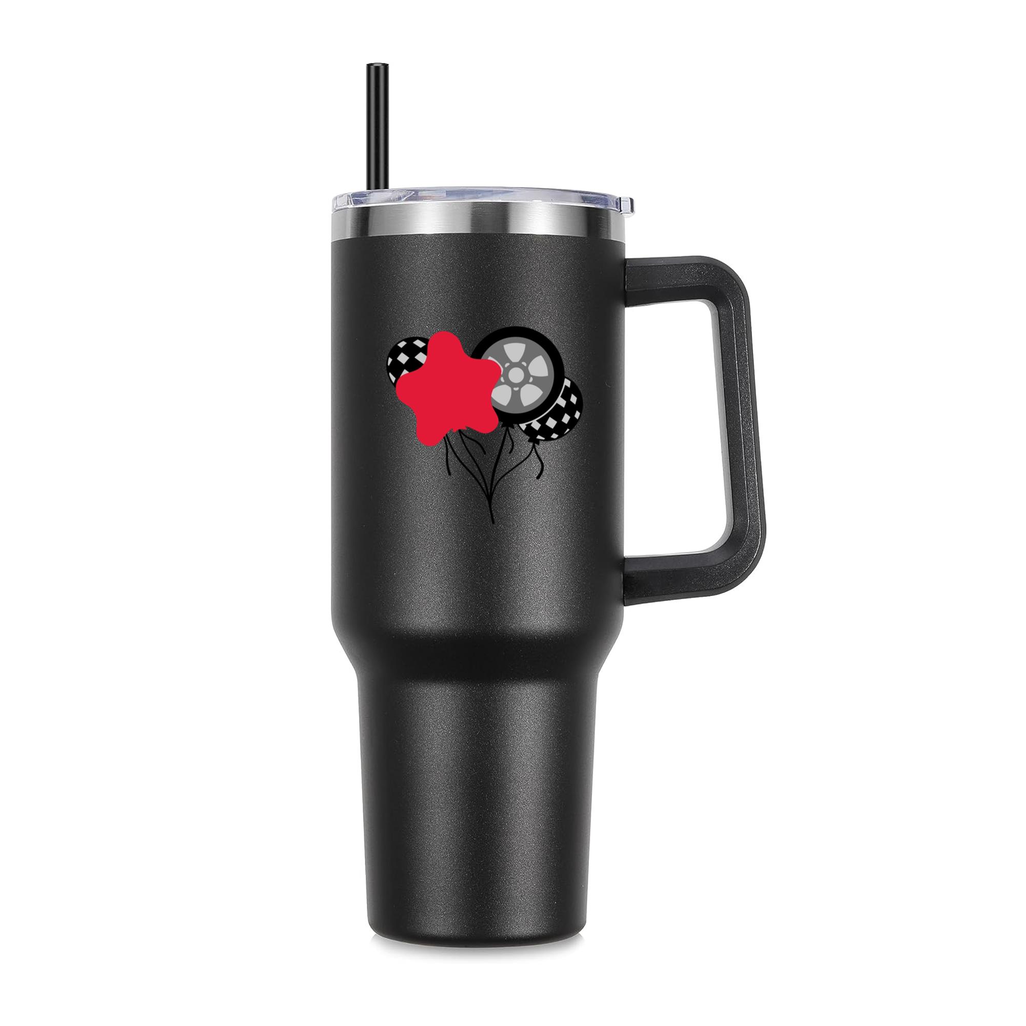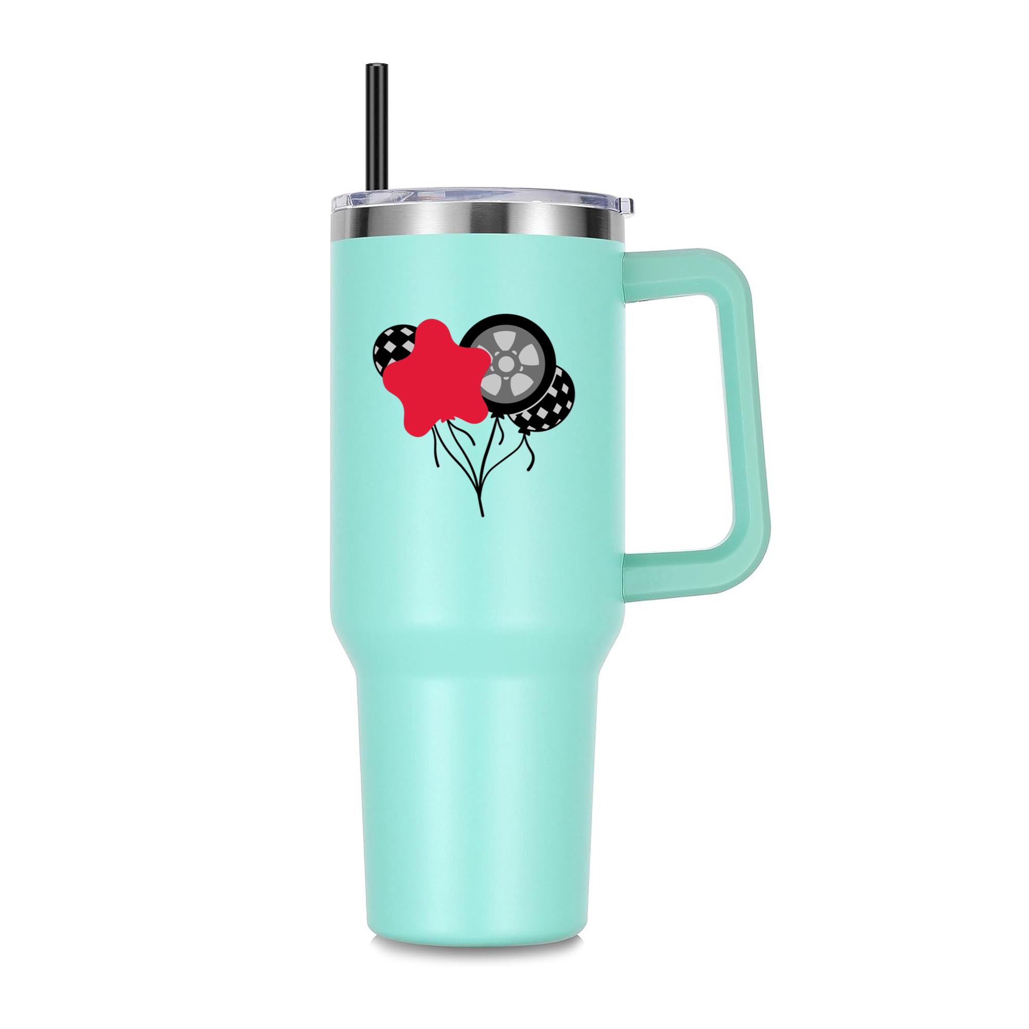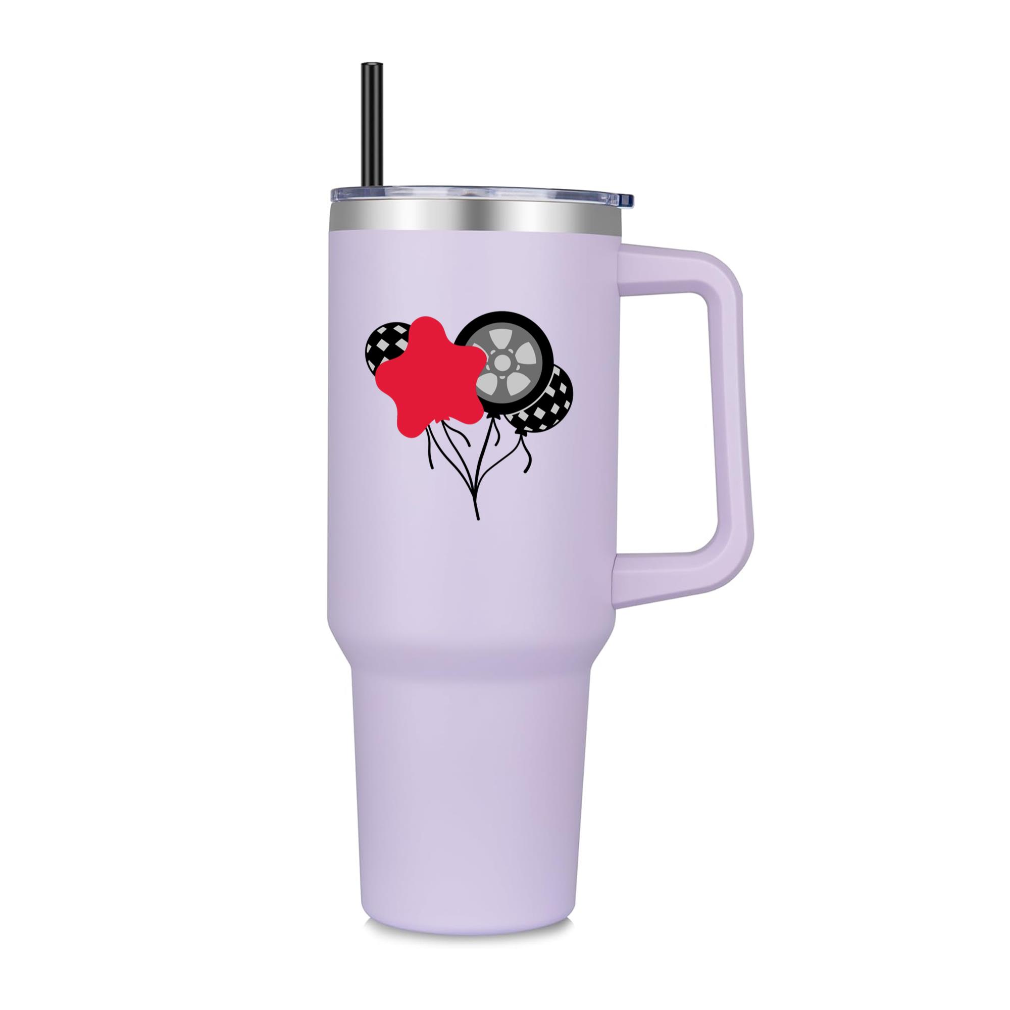 Playful Balloon Design With Racing Elements 40oz Stainless Steel Tumbler 40oz Stainless Steel Tumbler with Handle and Straw – Double-Wall Vacuum Insulated Travel Mug with Lid