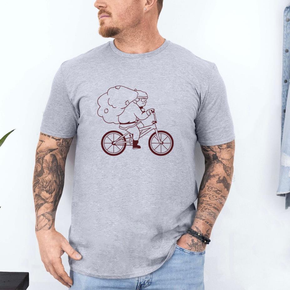 Comfy, casual, and always in style, this Santa Claus Sack Bicycle Stroke T-Shirt T-shirt is perfect for daily wear or easy gifting.