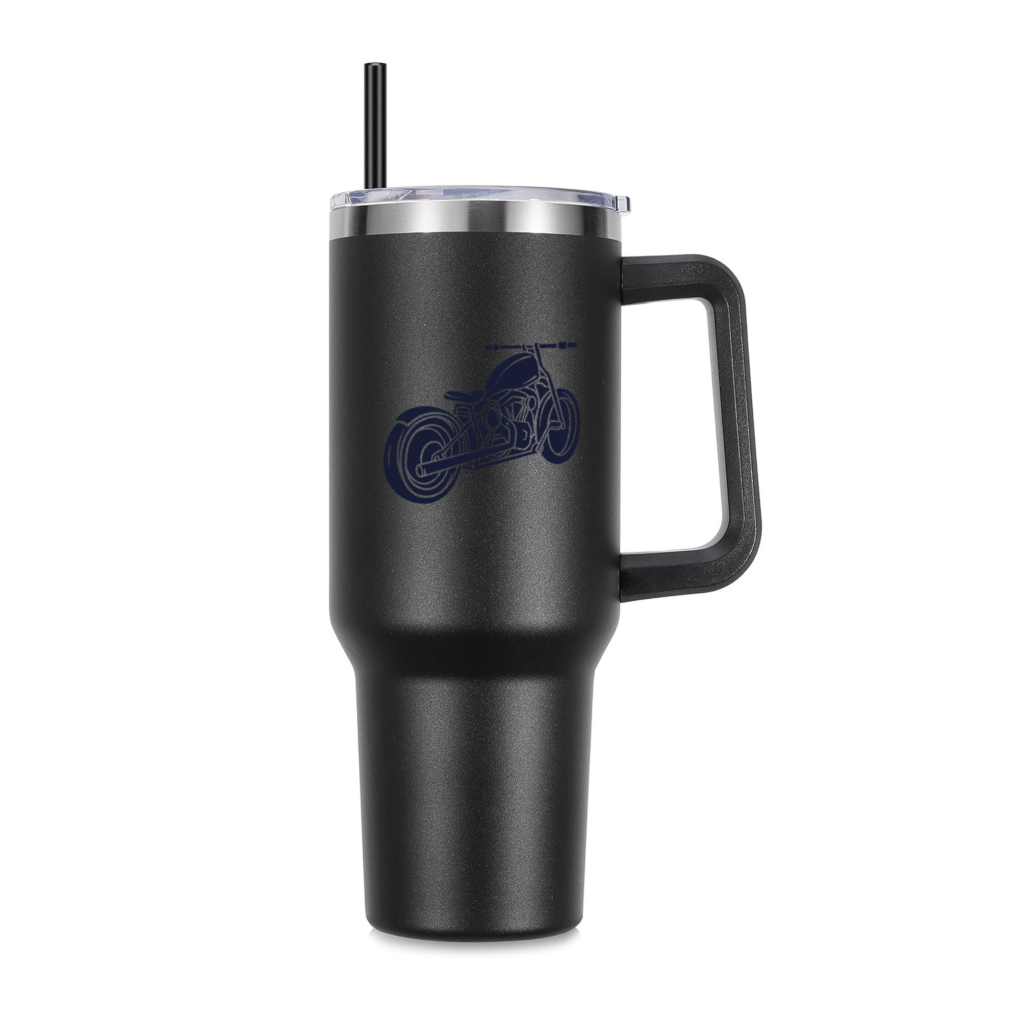 Stylish Motorcycle Line Art Design 40oz Stainless Steel Tumbler 40oz Stainless Steel Tumbler with Handle and Straw – Double-Wall Vacuum Insulated Travel Mug with Lid