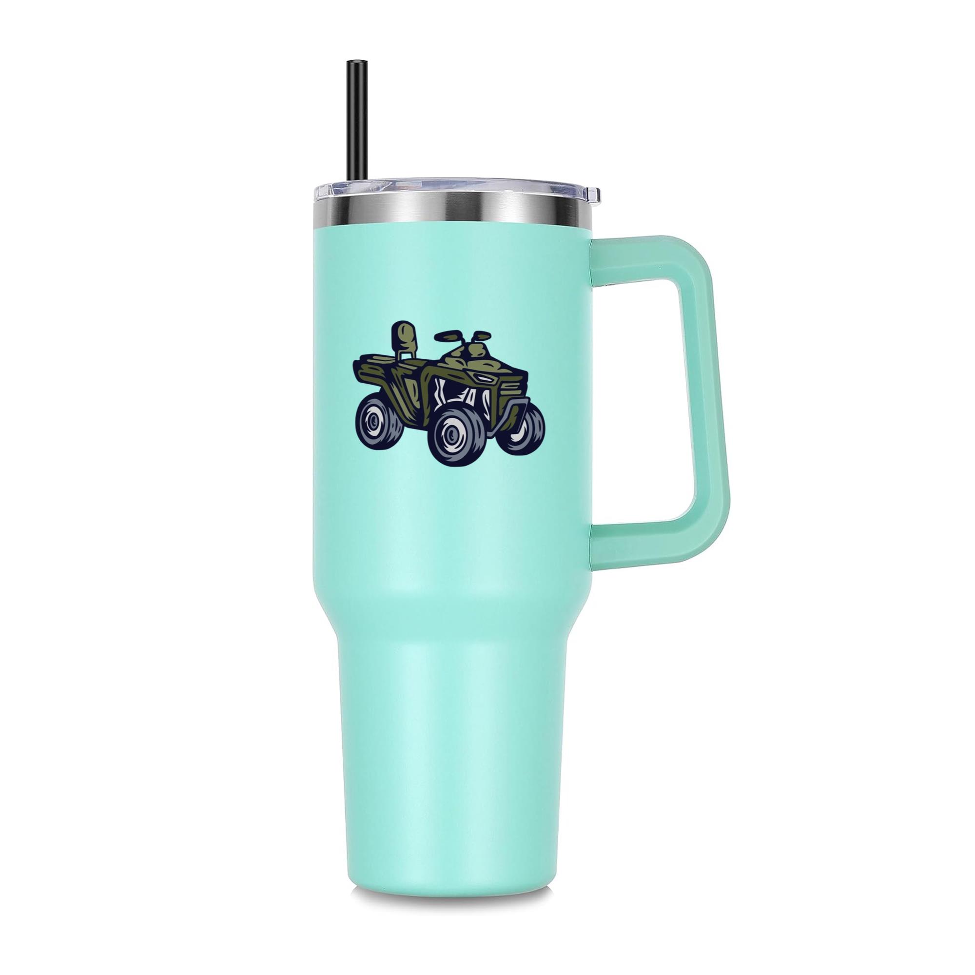 Stylish Off Road Atv Illustration 40oz Stainless Steel Tumbler 40oz Stainless Steel Tumbler with Handle and Straw – Double-Wall Vacuum Insulated Travel Mug with Lid
