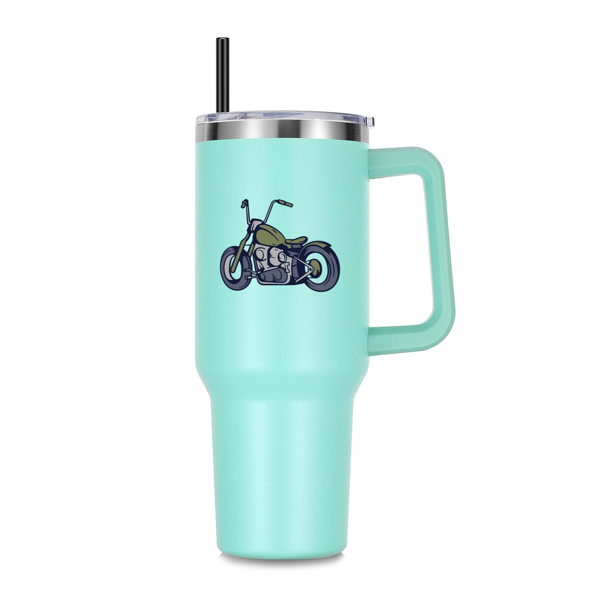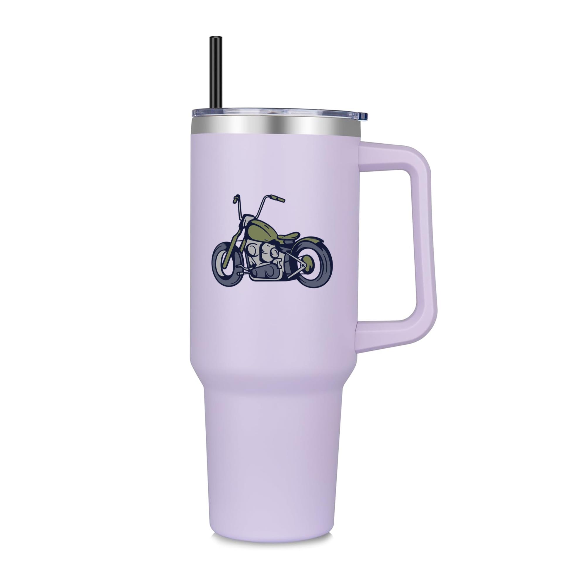 Stylized Cartoon Motorcycle Illustration 40oz Stainless Steel Tumbler 40oz Stainless Steel Tumbler with Handle and Straw – Double-Wall Vacuum Insulated Travel Mug with Lid