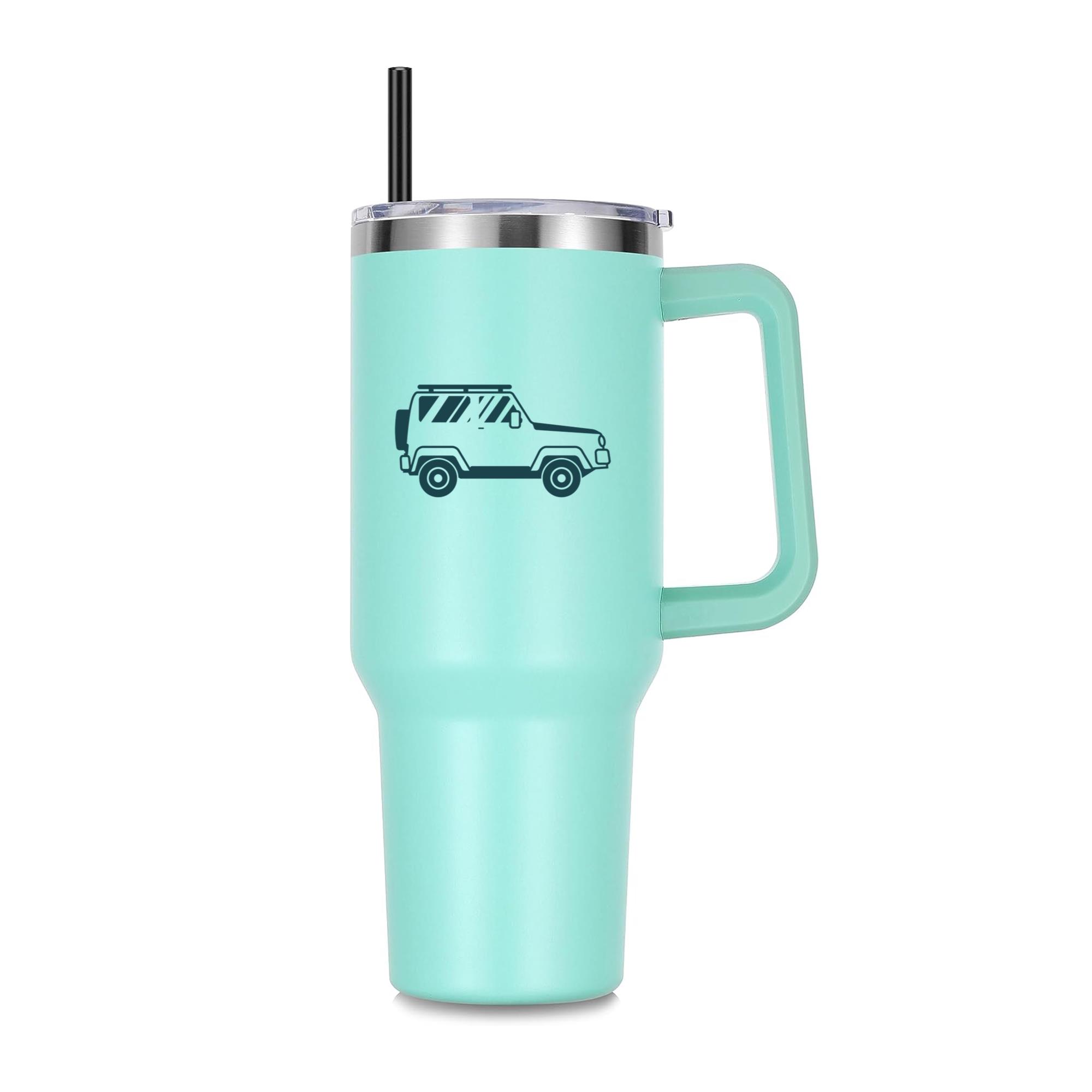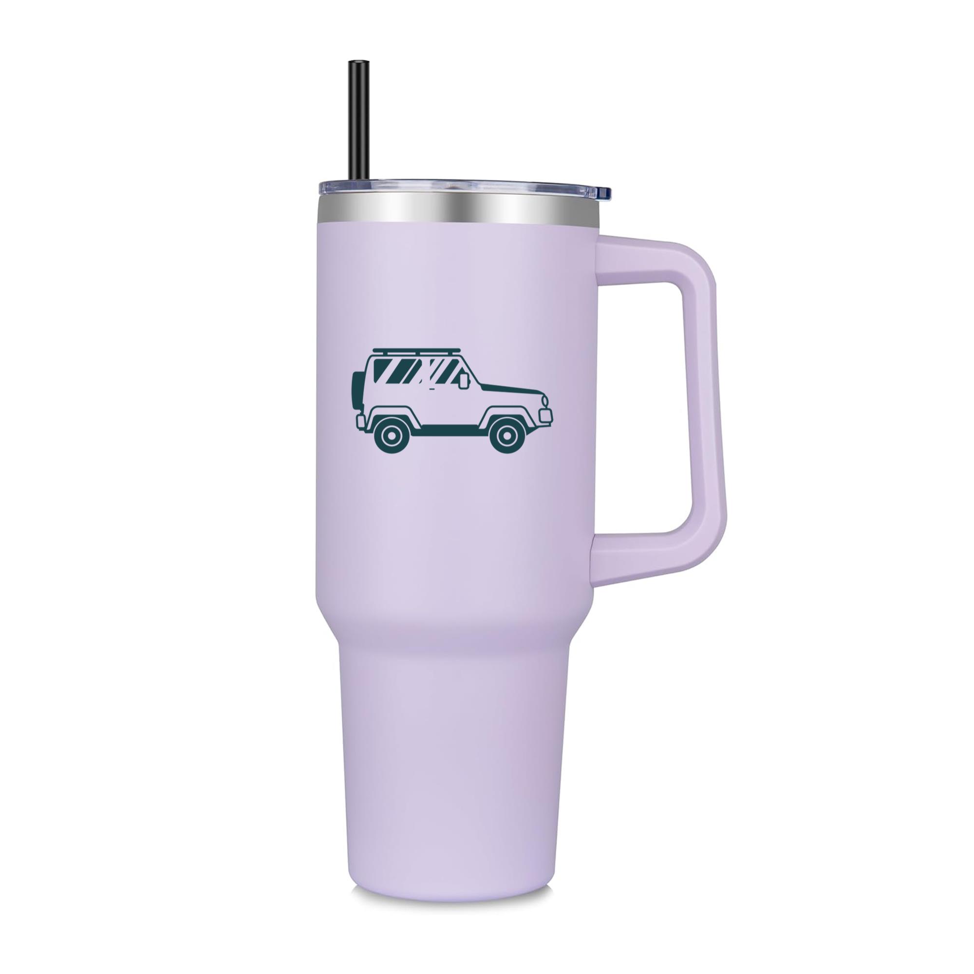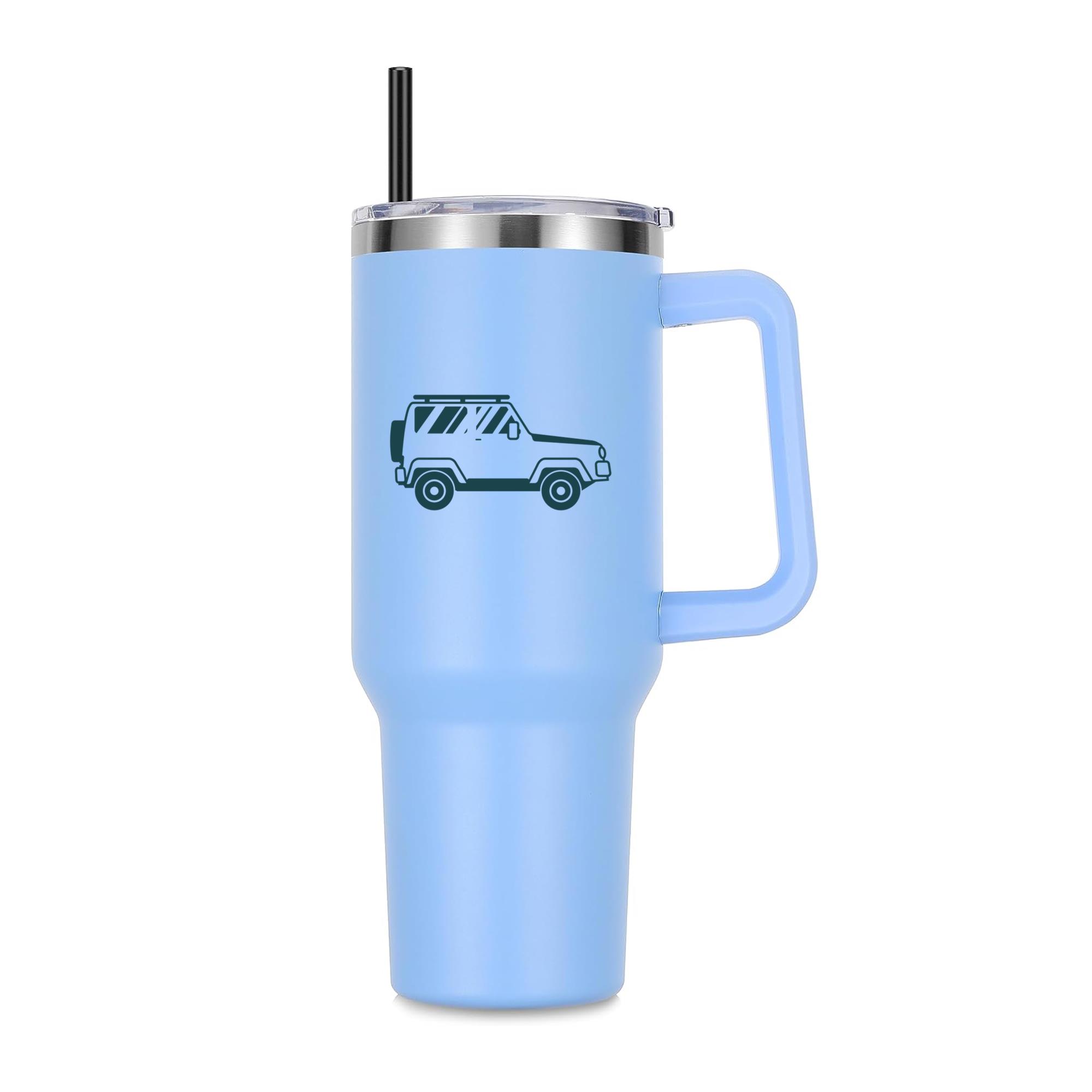 Truck Car Filled Stroke 40oz Stainless Steel Tumbler 40oz Stainless Steel Tumbler with Handle and Straw – Double-Wall Vacuum Insulated Travel Mug with Lid