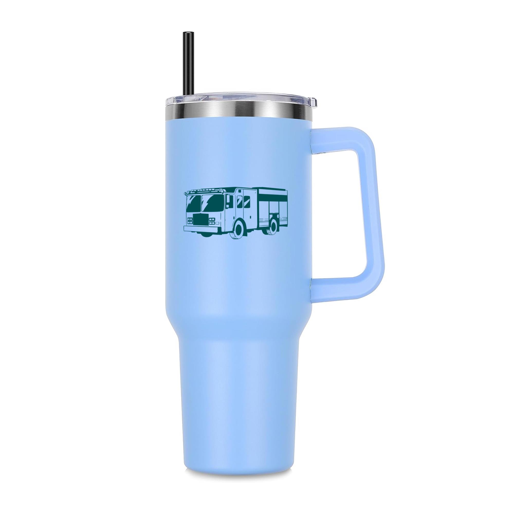 Truck Fire Engine Illustration 40oz Stainless Steel Tumbler 40oz Stainless Steel Tumbler with Handle and Straw – Double-Wall Vacuum Insulated Travel Mug with Lid