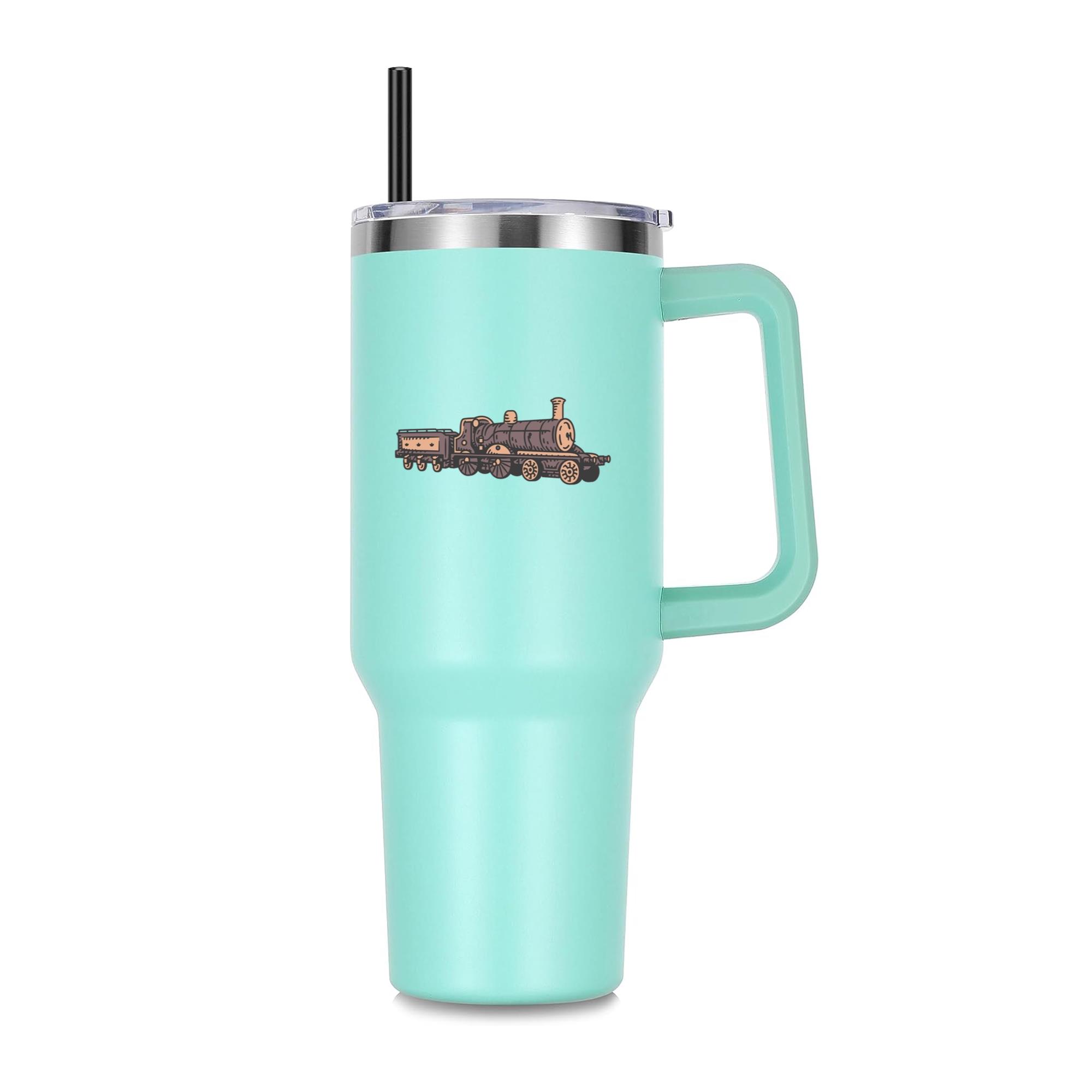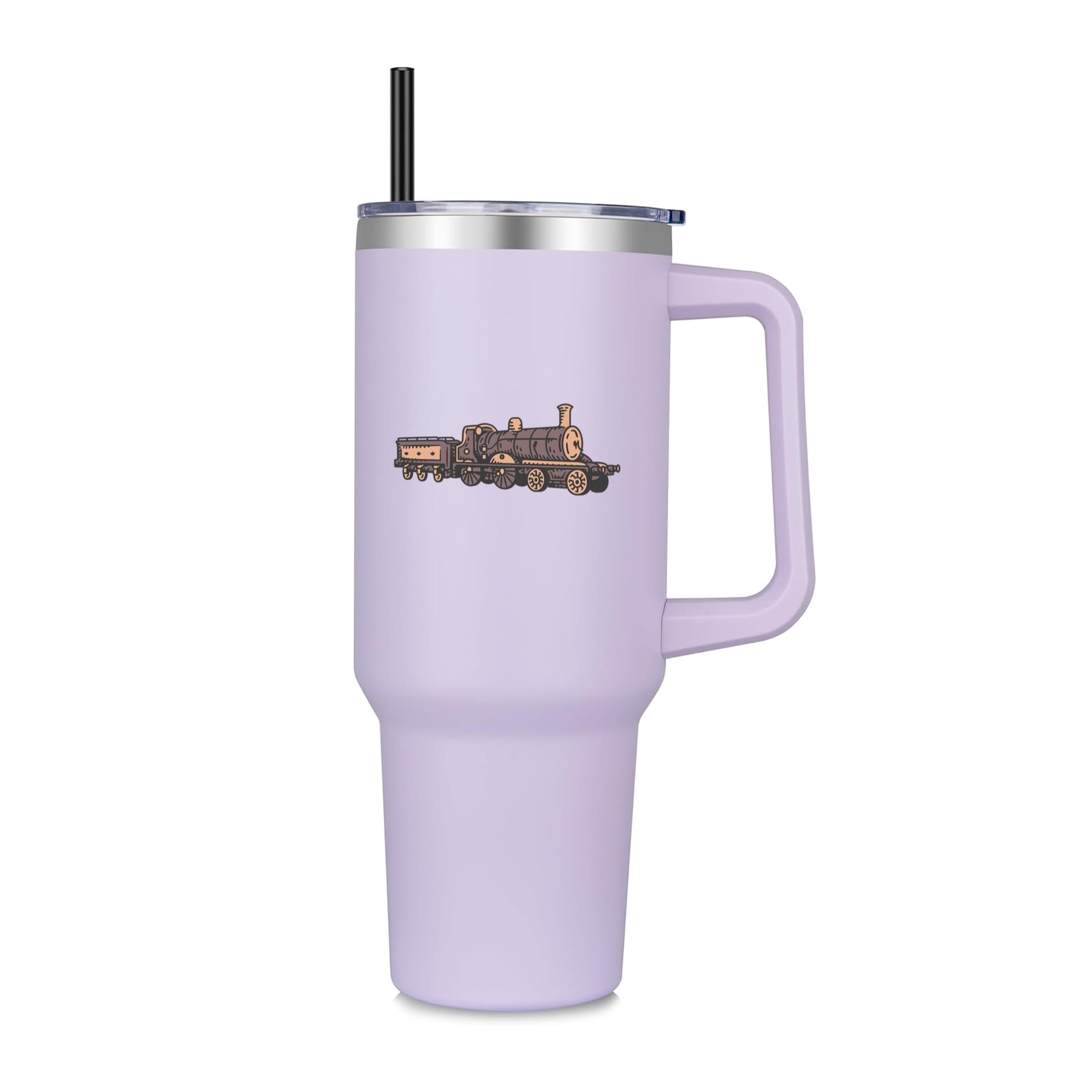 Turn Of The Century Train 40oz Stainless Steel Tumbler 40oz Stainless Steel Tumbler with Handle and Straw – Double-Wall Vacuum Insulated Travel Mug with Lid