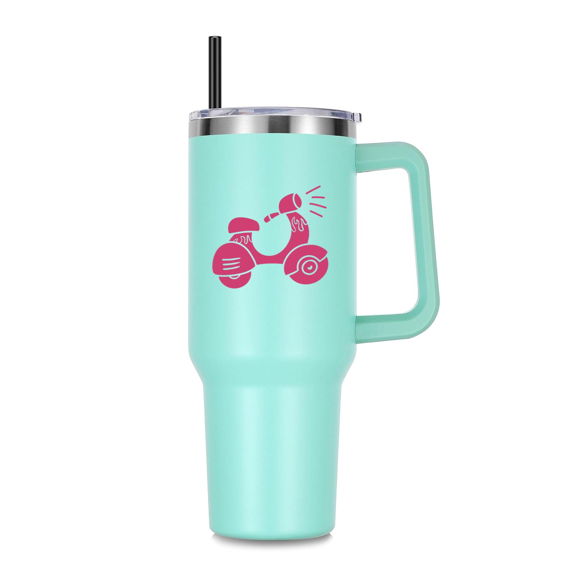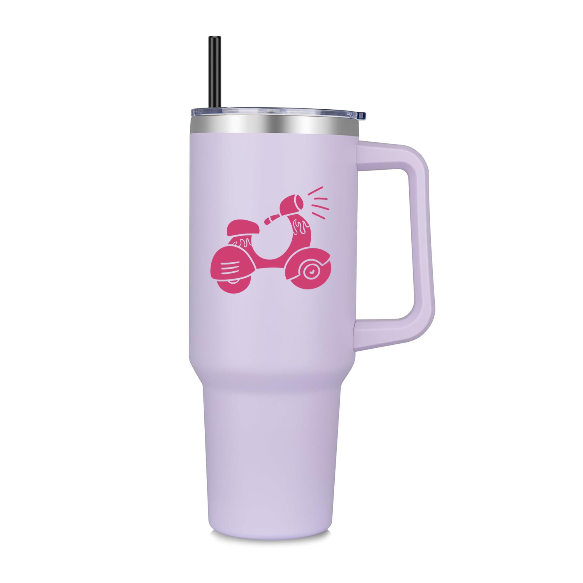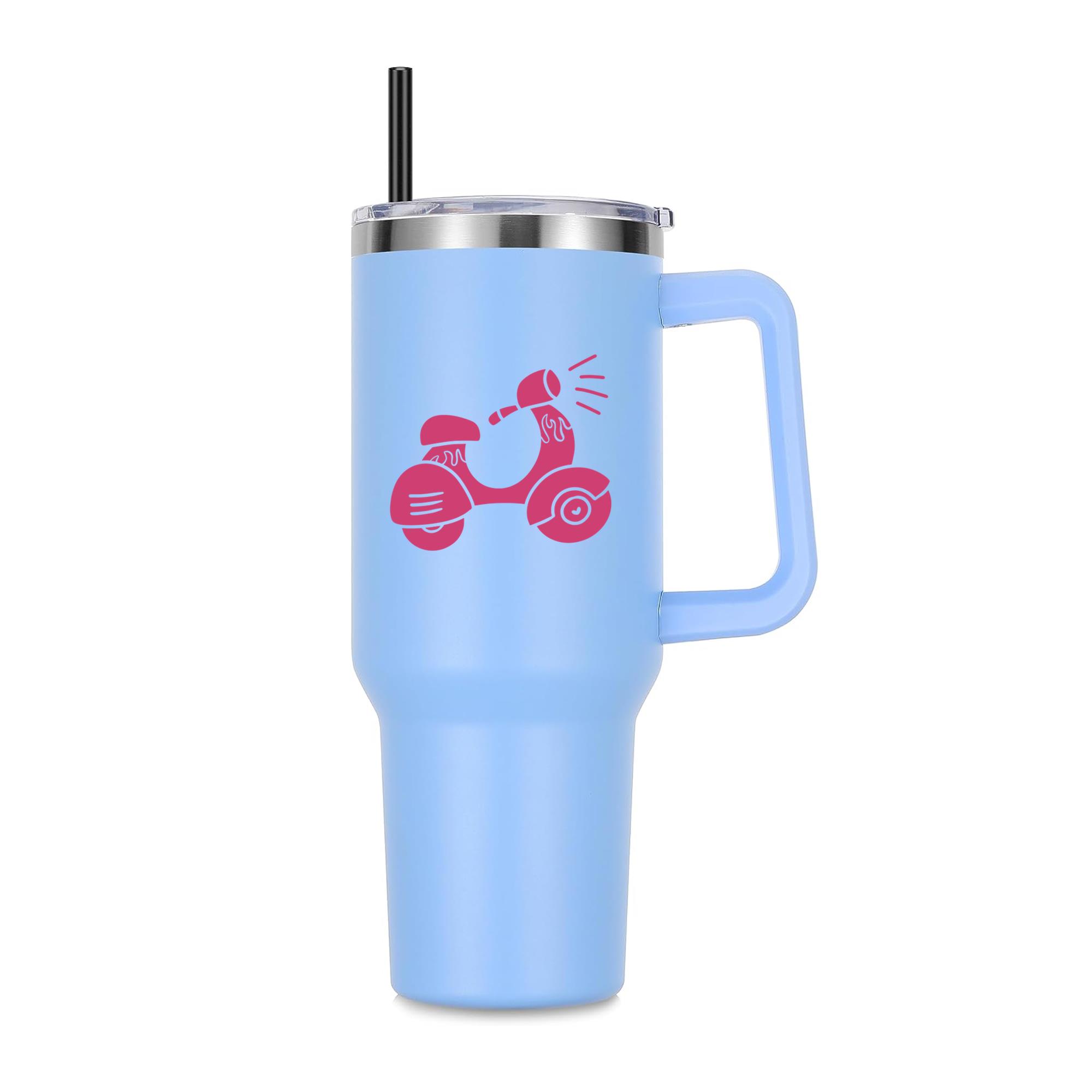 Vibrant Pink Scooter Illustration 40oz Stainless Steel Tumbler 40oz Stainless Steel Tumbler with Handle and Straw – Double-Wall Vacuum Insulated Travel Mug with Lid