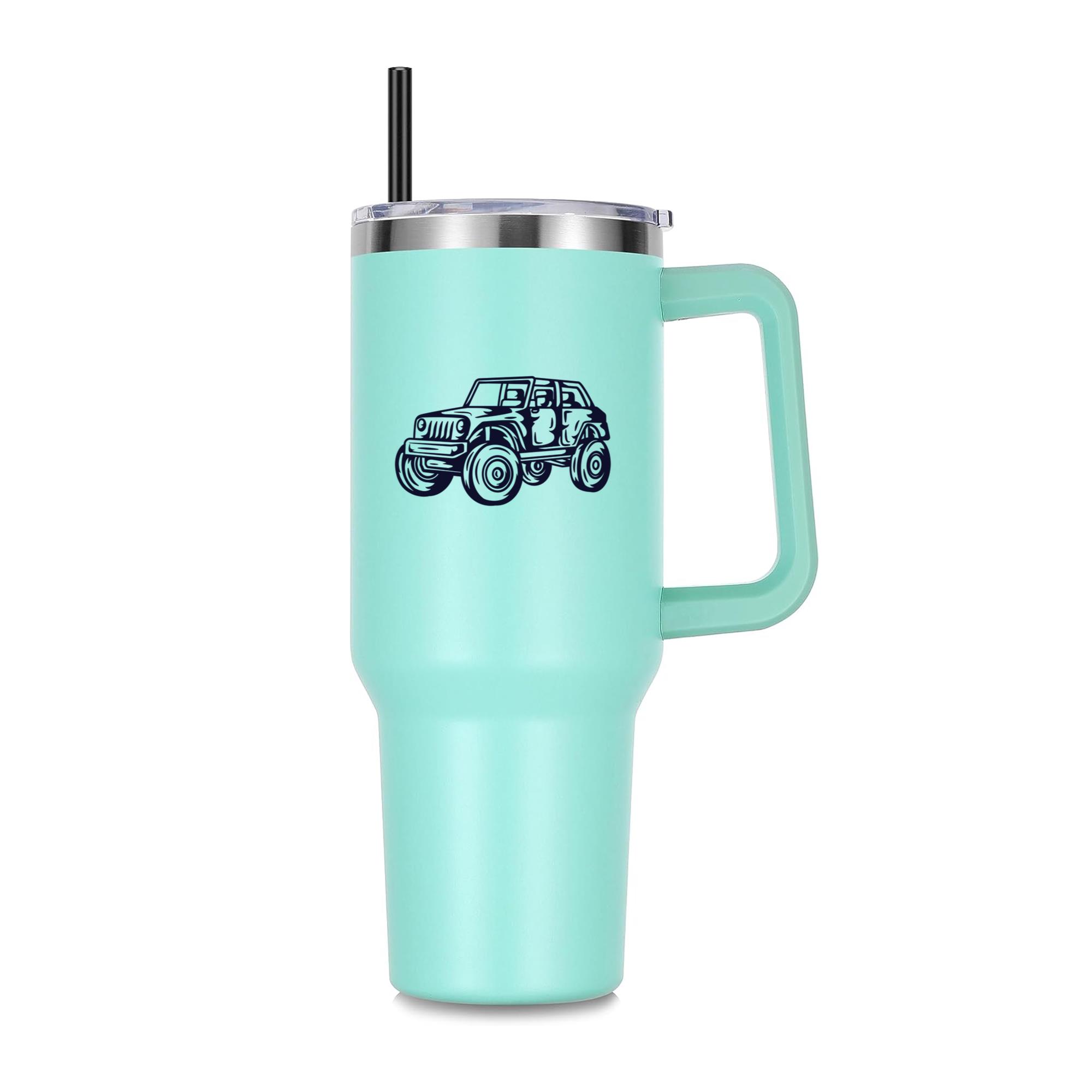 Vintage Off Road Vehicle Illustration 40oz Stainless Steel Tumbler 40oz Stainless Steel Tumbler with Handle and Straw – Double-Wall Vacuum Insulated Travel Mug with Lid